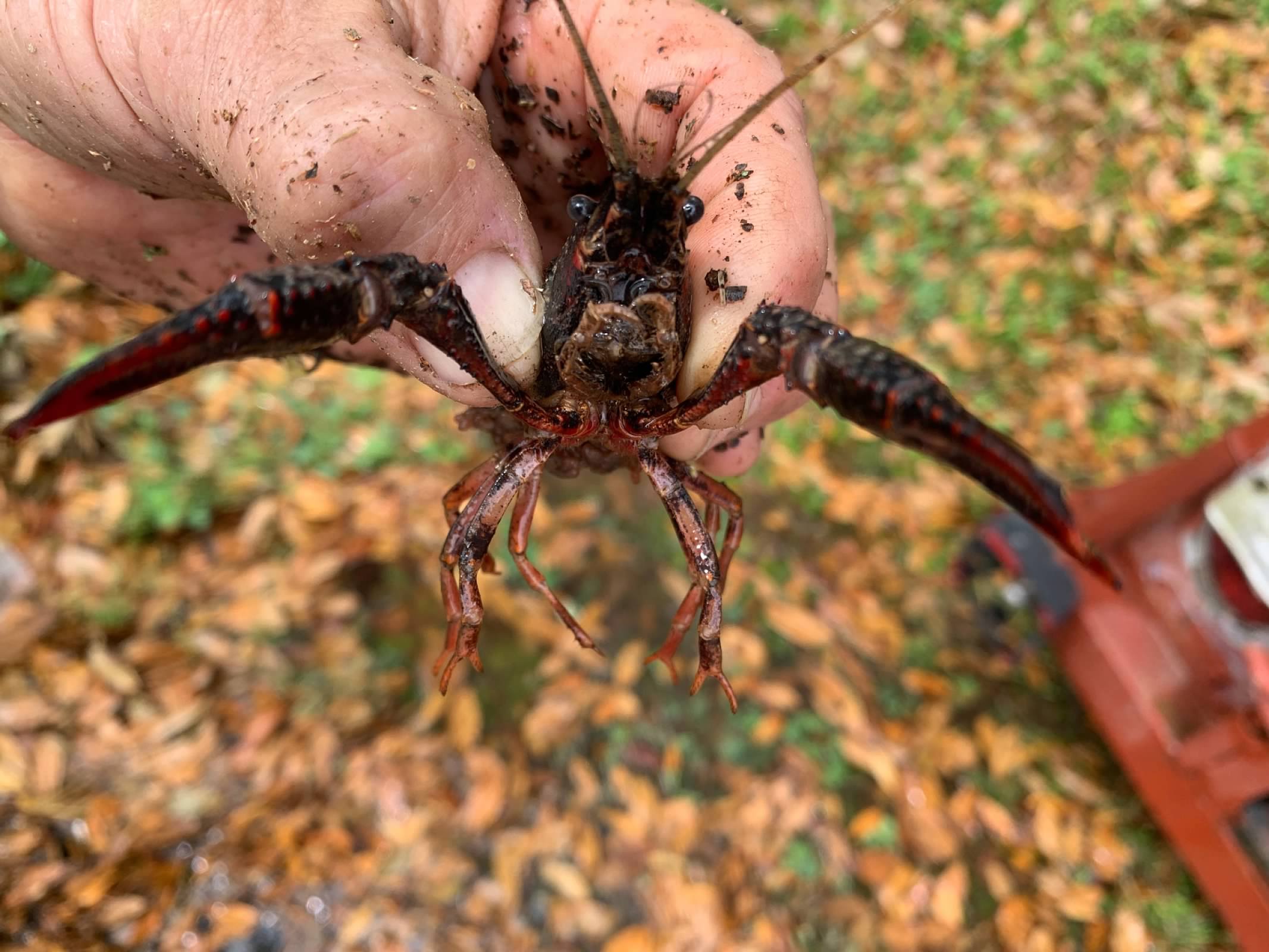 I picked them both up to observe them. The old-timers always say that the thunder and lightning get the crawfish out of their burrows in the ground and bring them to the surface. They're right!