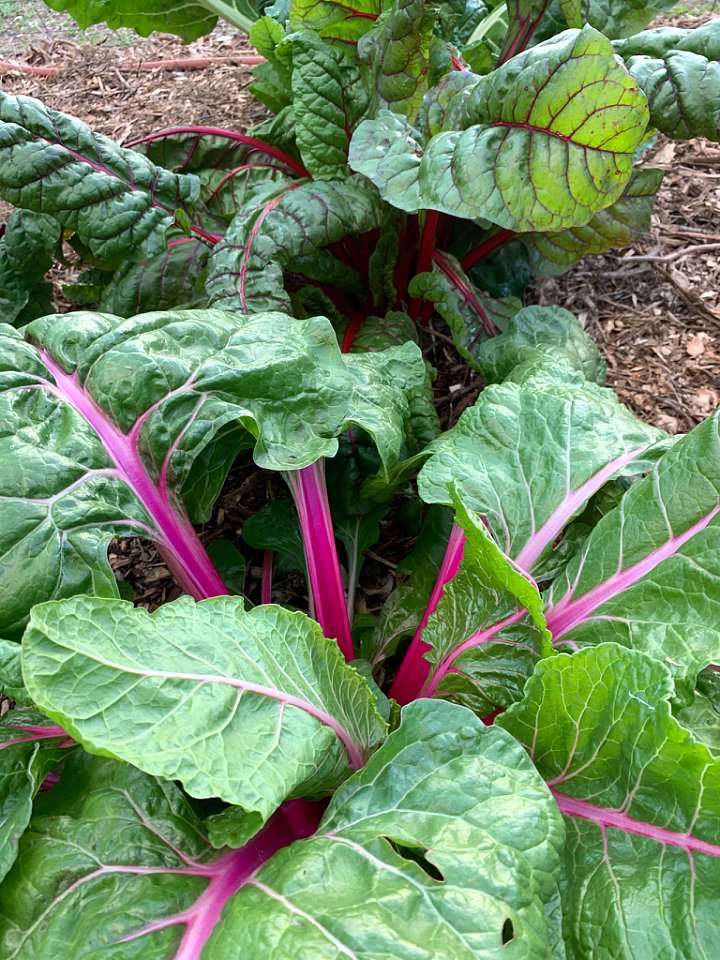 Some orange, yellow and white. I leave them growing as they add some beauty to the landscape of the garden. You'll notice the potato patch is mulched deeply with oak leaves. I'll turn these under to enrich the soil after the potato harvest.