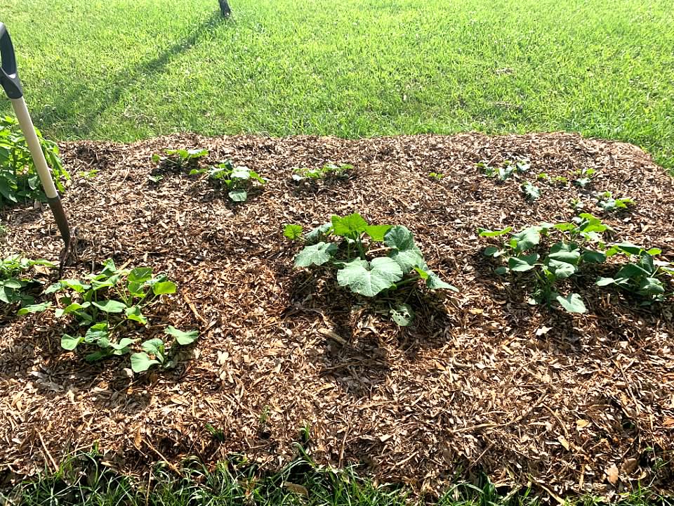 Okay, I promise this is the last update on the garden in entirety. I had forgotten to add a couple items. First, let's look at some things I missed. To the right, you'll see some birdhouse gourd vines that came up volunteer from last year's seeds. Immediately to the left are a couple of butternut squash. We LOVE to roast these bad boys and make a delicious soup. So good! To the far left (and all these vines mix together), are several spaghetti squash. They'll vine all over the compost pile. It will be a real hunt to find the ripened squash as those big leaves and vines will be all over the place.