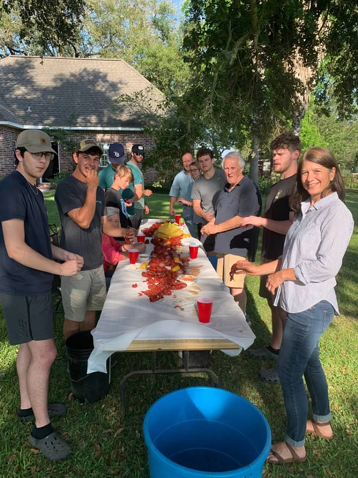 Mother's Day 2022. We started out by attending church. It was a glorious morning. Before we took off our "church clothes," I had the boys (Benjamin on left, Russ on right) sit with their momma and take a photo to commemorate the big day. We ate a light lunch since we were planning on having a crawfish boil in the late afternoon. Along with Tricia, Russ, Benjamin and me, Mom & Dad were coming and my sister Jenny, her husband, Brett and her six boys and a girlfriend of the oldest.