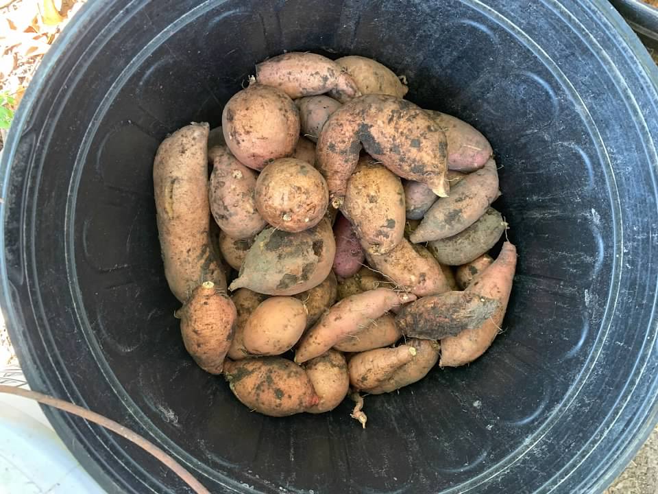 I dug up about a third of the sweet potato patch and decided I'd plant carrots in the harvested area and allow the remaining sweet potatoes to grow for a few more weeks before I attempt to harvest again.