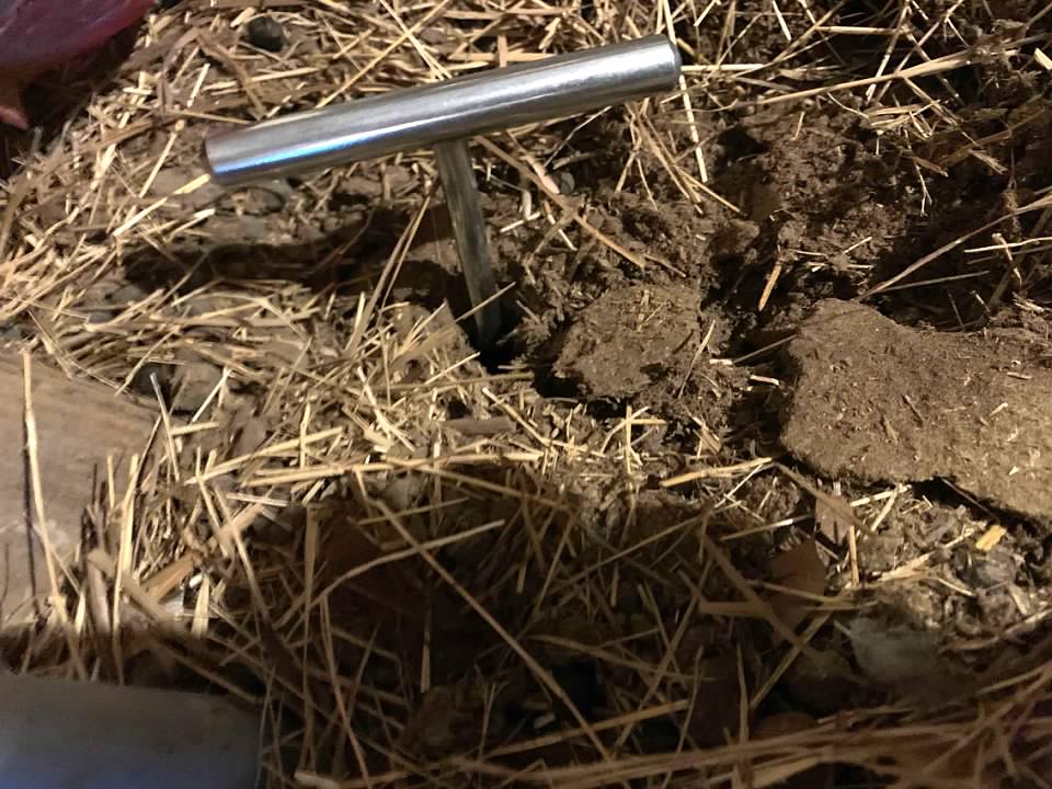 I definitely don't want the barn to fall down, so we've got to do something about the infestation. Tricia let me know that we had 5 more bait stations left over from the last time we treated. Time to get these in the ground.