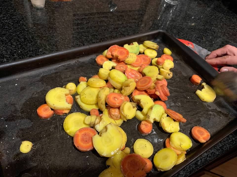 We sliced them up, tossed them in olive oil, roasted them in the oven and sprinkled fresh cut parsley on top.