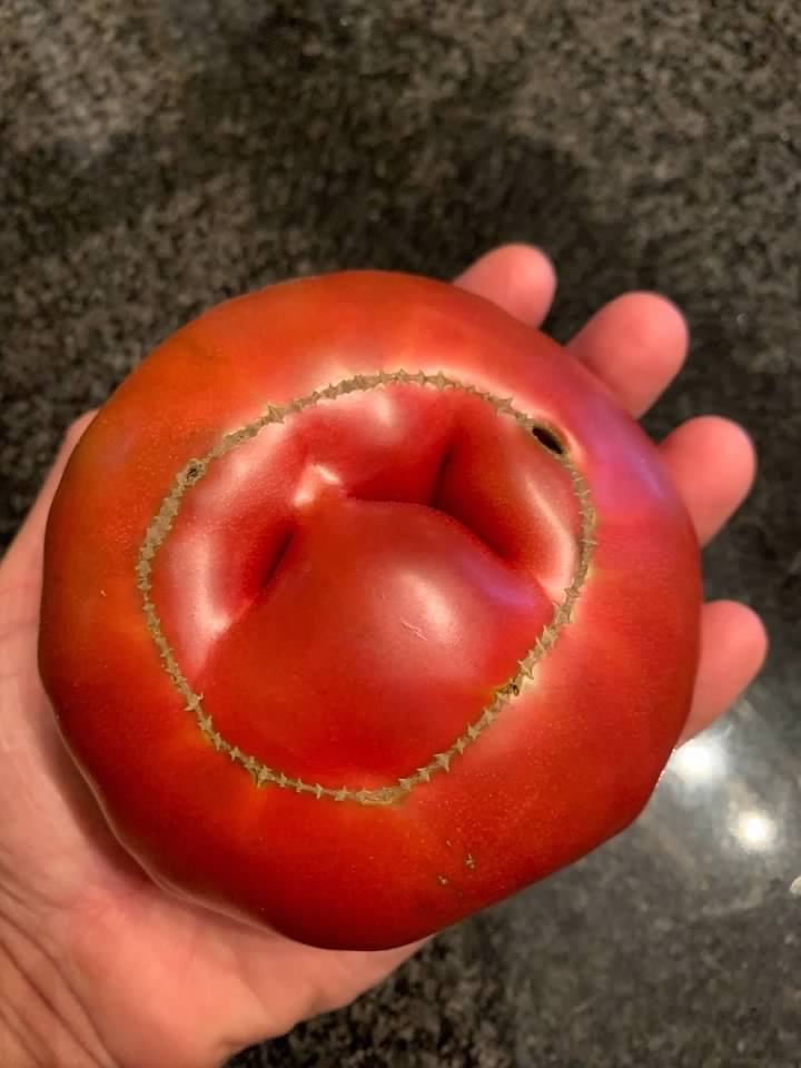 Here is a nice Pink Brandywine tomato. It is heavy and unscarred by bugs.