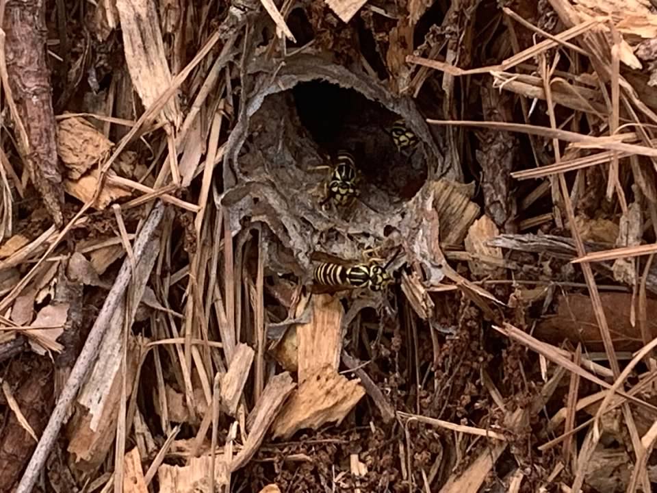 Numerous yellowjackets came out of the nest, before succumbing to the fumes and perishing.  I didn't get stung, fortunately, nor did anyone else.  Go yellowjackets!