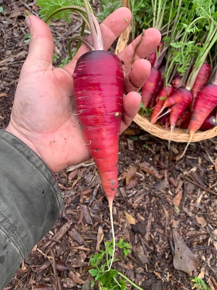 We gave some of these to a friend at church and he thought that the carrots had crossed with my beets. Nope, I told him. That's just the natural color of this variety.