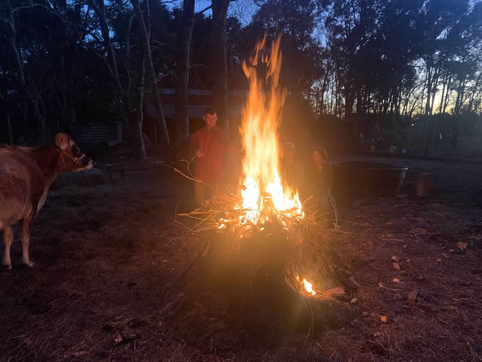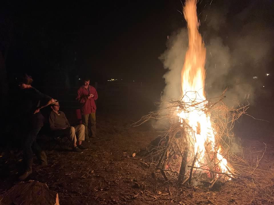 We walked back and forth in the dark, bringing fresh branches to fee the fire. The flames licked at the sky, growing higher and higher.