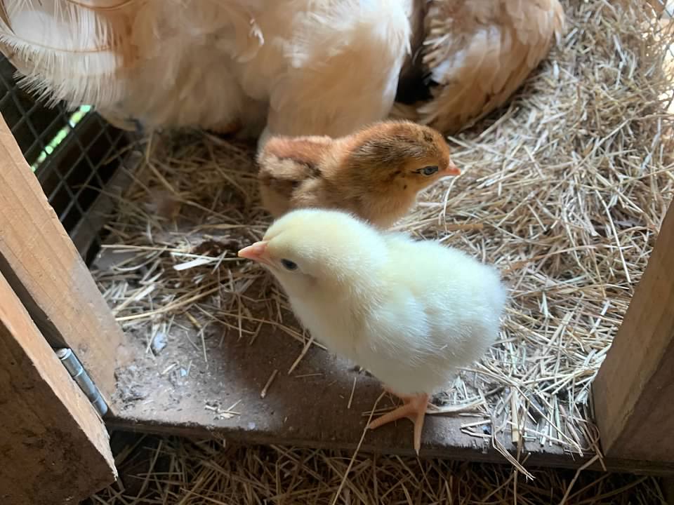 It's a dangerous world out there for a newborn chick. There are many predators lurking around on the ground and in the sky. Rats, Snakes, Red-tailed hawks, minks... There's even danger from "friendly" animals. The cows don't look where they are walking and if a baby chick gets under their feet, well, it's not pretty.
