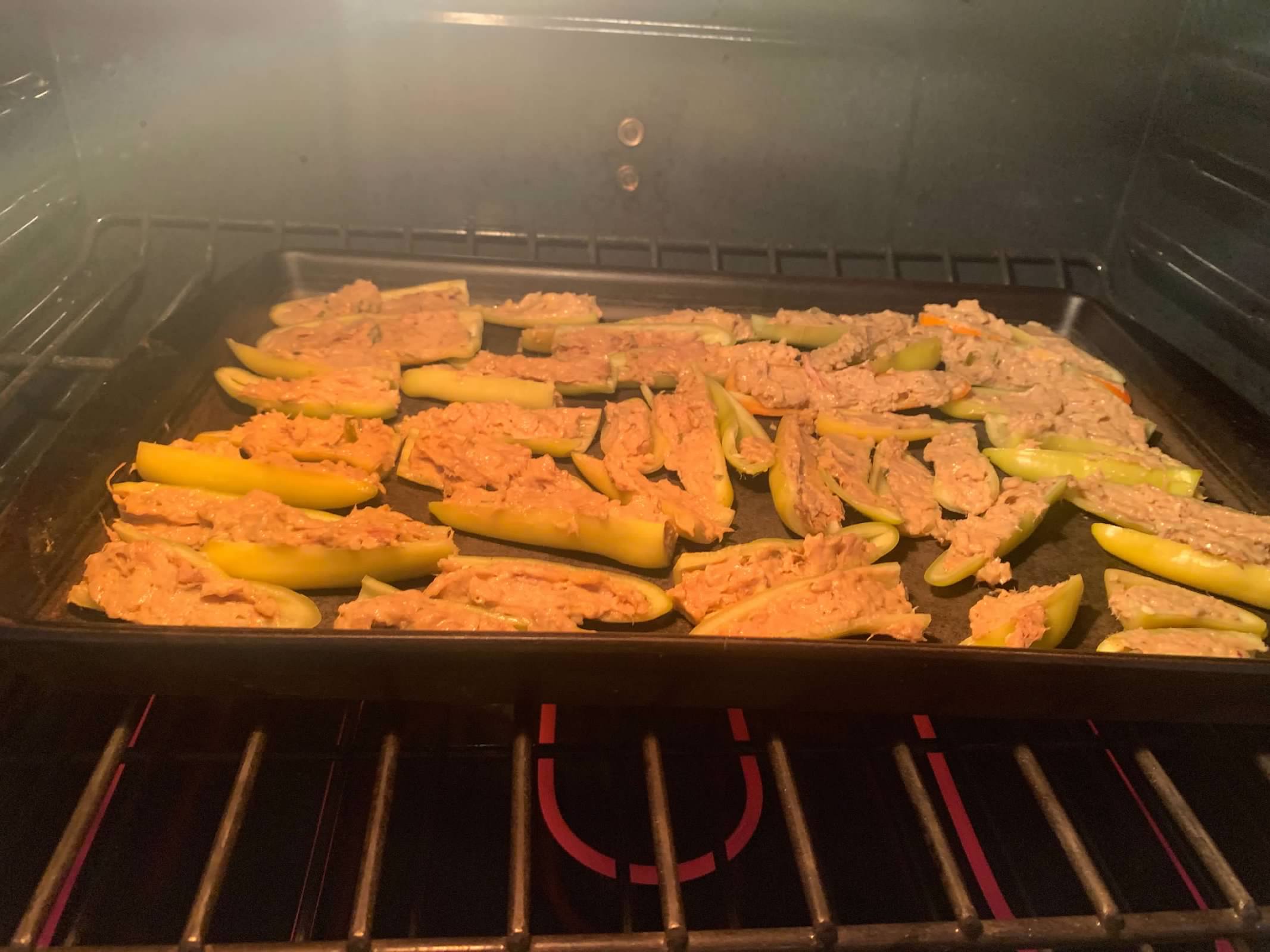 There is a local meat market in our town called Cormier's Specialty Meats. They sell boudin mixed with cream cheese for making poppers. One afternoon last week I cut the banana peppers in half and seeded them. Using a spoon, Tricia and I filled each pepper half with the boudin cream cheese and broiled in the oven. Mighty good!