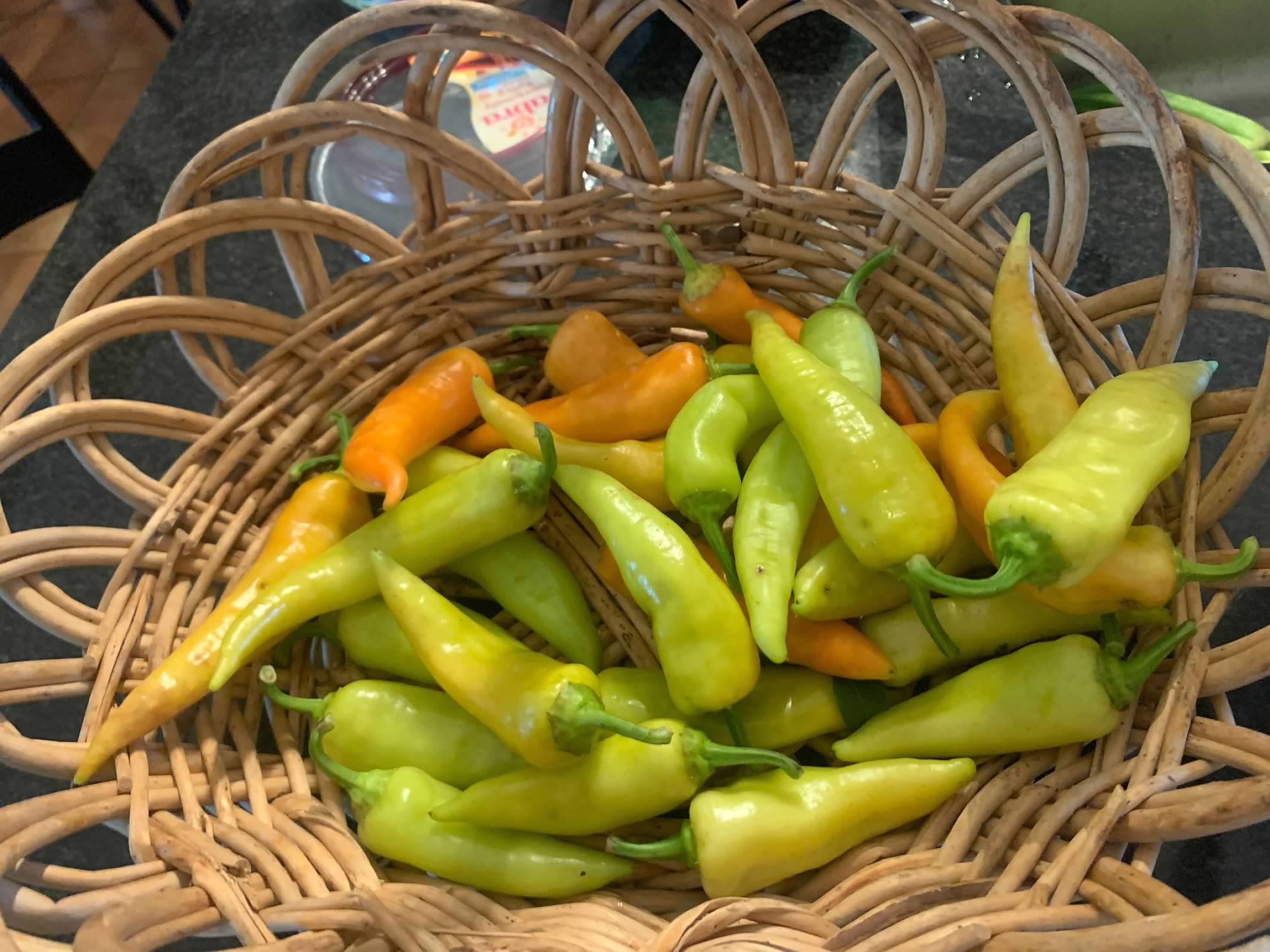 While half of the garden is finishing up in the summer heat, the other portion is still producing. Peppers is one of those items. We have several varieties going right now: Jalapenos. These are probably my favorite, followed by Anaheims. This year I planted a new variety (for us) called Shishito Peppers. They are delicious, roasted and blistered. I'll plant these from here on out. We have a bunch of Banana Peppers that continue to produce. We eat them raw. We pickle a bunch of them, too.